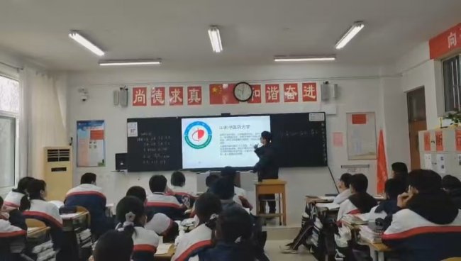 在山东省菏泽市郓城县实验学校,宣讲团有序开展招生宣传活动,简洁清晰地介绍学校基本情况与报考信息,普及中医药相关知识,激发同学们对中医药的兴趣与向往,取得了良好的宣传效果。